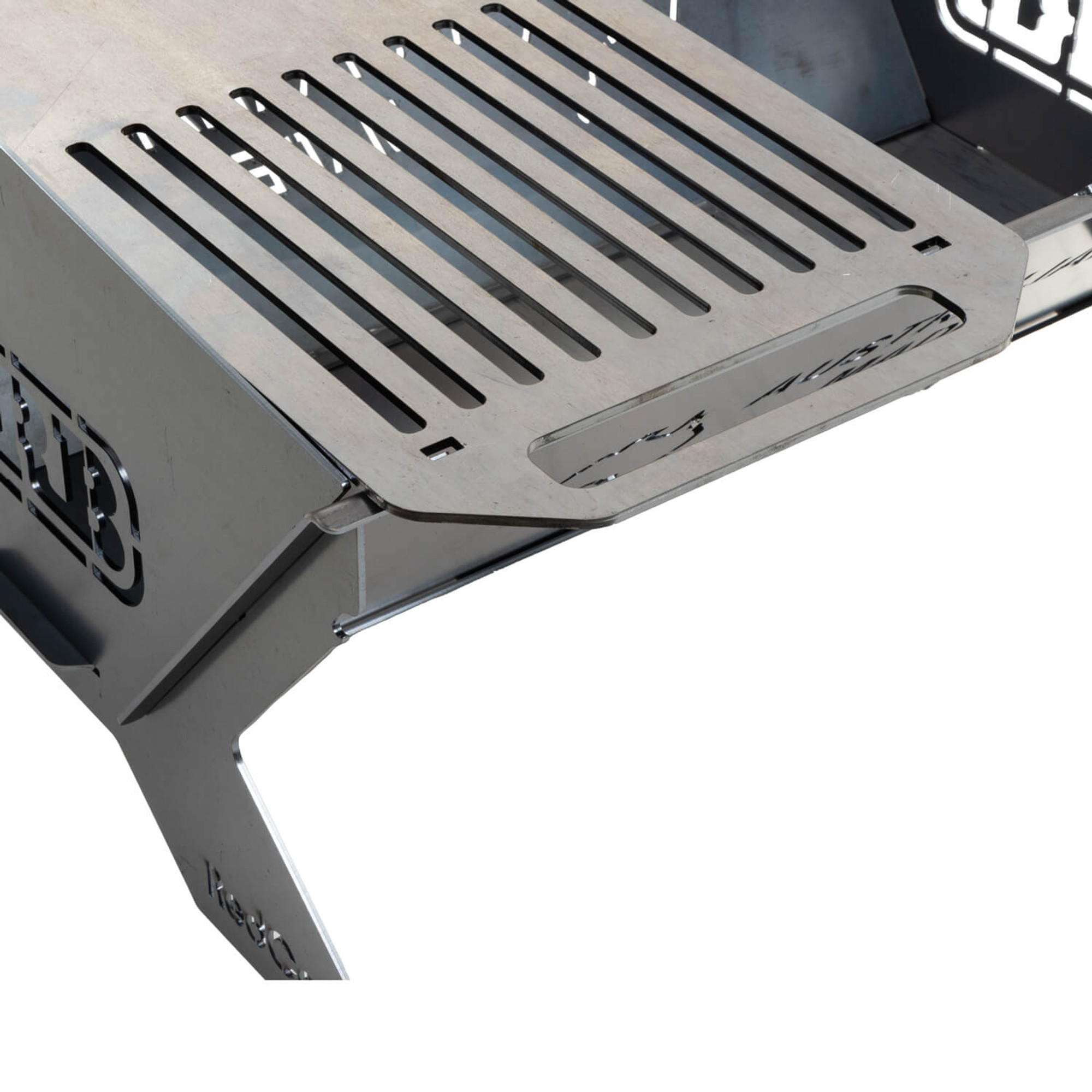 – Diseño de 5 Piezas: Incluye una base para contener las brasas y calor, con bordes superiores doblados que aseguran la parrilla de cocción.